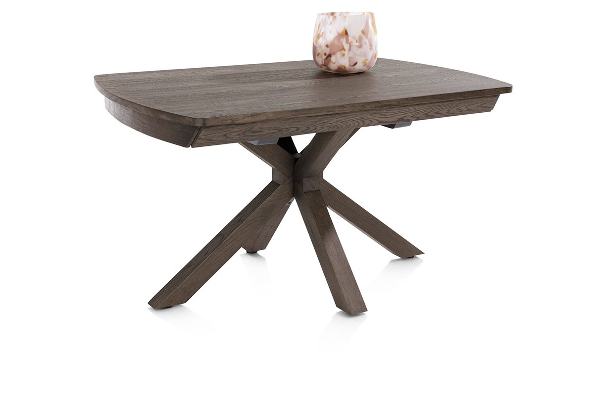 Functioneel en stijlvol: de NYON tafel breidt zich moeiteloos uit van 140 à 190 cm dankzij een onzichtbaar en soepel schuifsysteem. Het blad in eikenfineer in de kleur Basalte rust op een onderstel dat altijd gecentreerd blijft, zelfs wanneer de tafel is uitgeschoven.