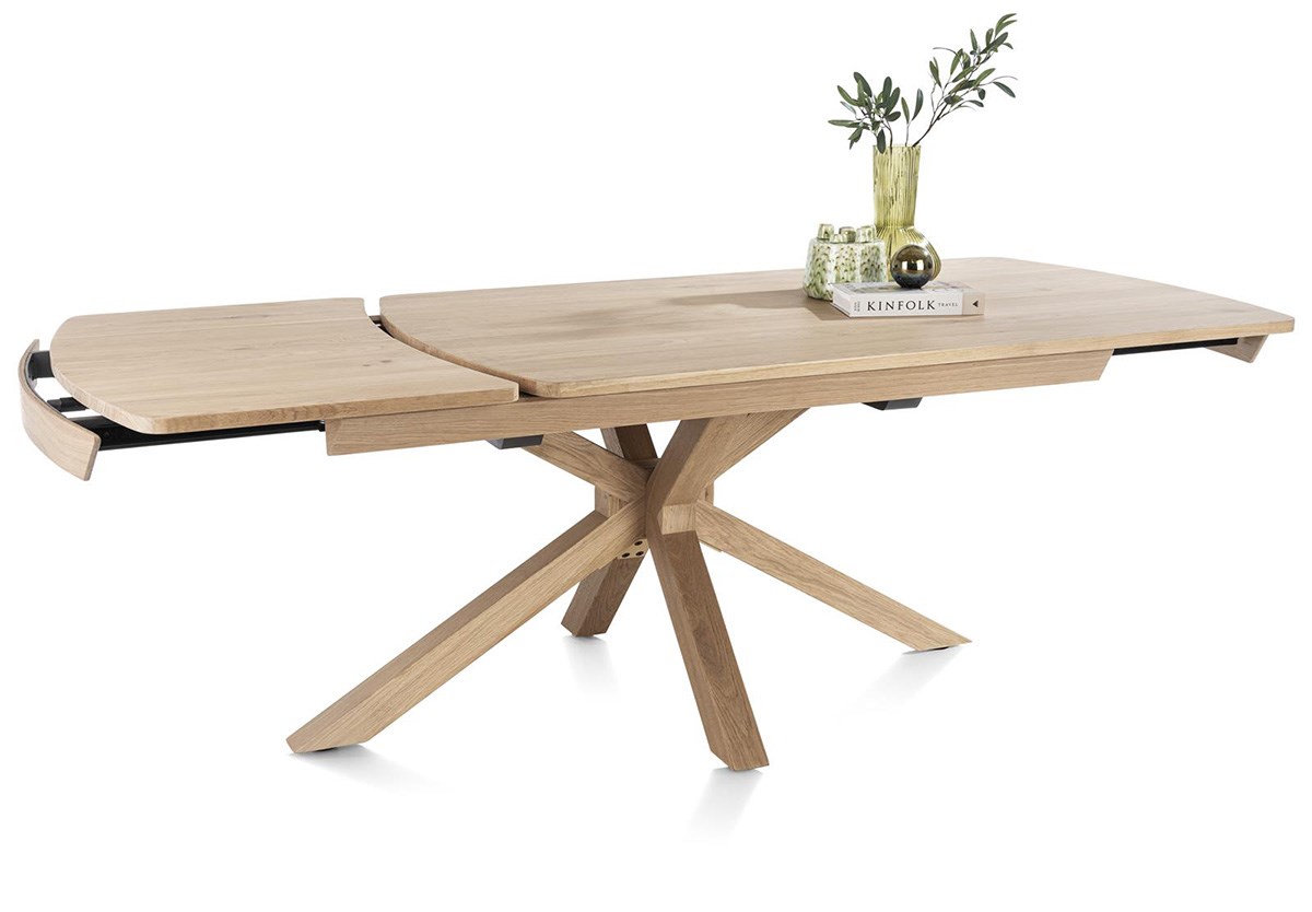 Functioneel en stijlvol: de NYON tafel breidt zich moeiteloos uit van 170 à 230 cm dankzij een onzichtbaar en soepel schuifsysteem. Het blad in eikenfineer in de kleur Natural Sand rust op een onderstel dat altijd gecentreerd blijft, zelfs wanneer de tafel is uitgeschoven.