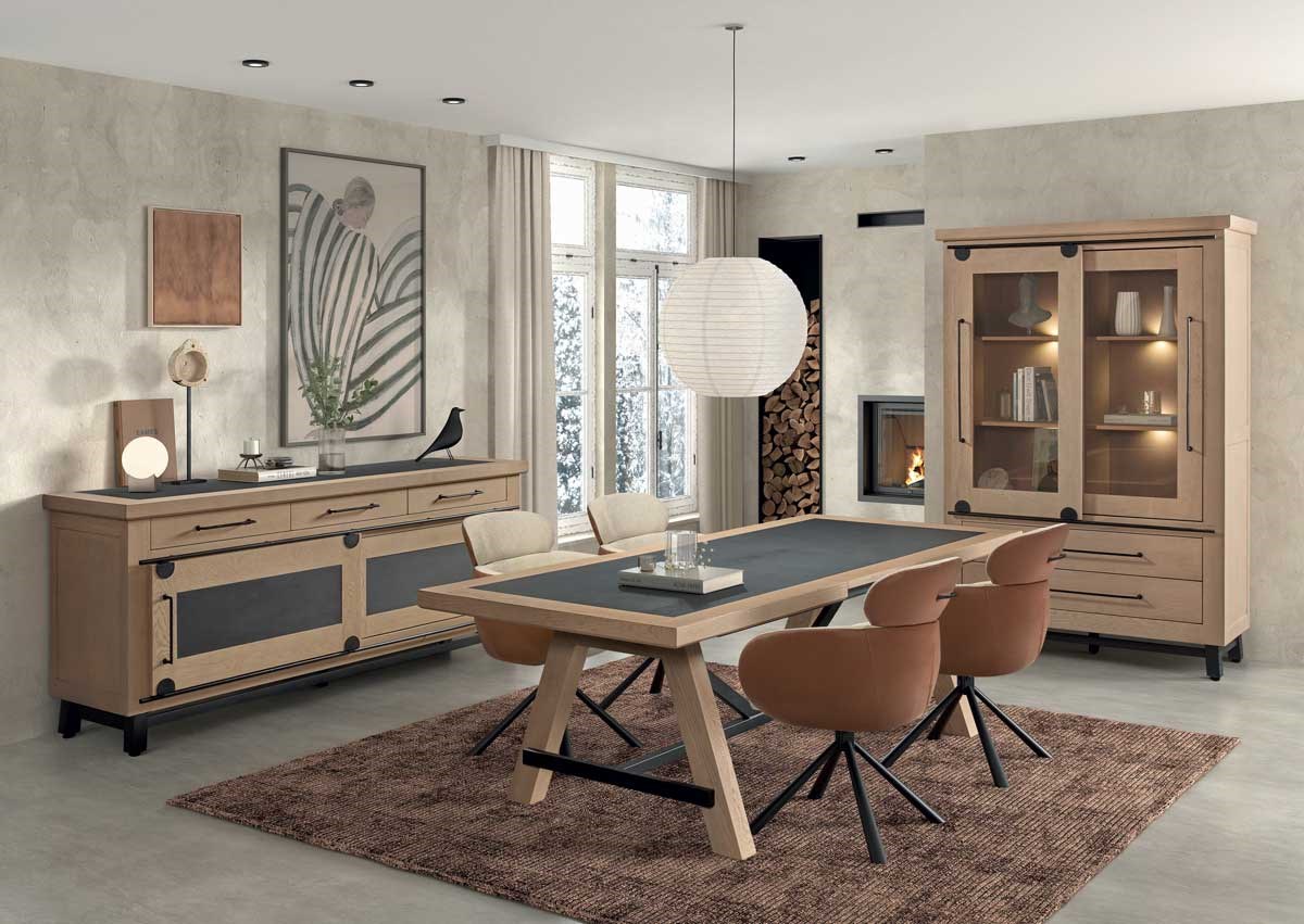 Ontdek de woonkamer BRUGES, een stijlvolle en duurzame woonkamerset vervaardigd uit massief eikenhout. Deze collectie combineert een warme, natuurlijke uitstraling met moderne afwerkingen in grijze eik en HPL antraciet. Het resultaat is een interieur dat klasse uitstraalt en perfect past in zowel landelijke als hedendaagse woonstijlen.