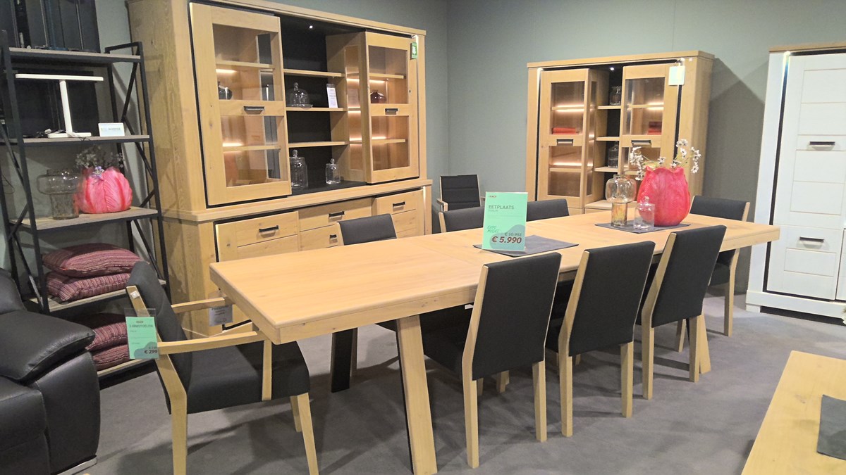DRESSOIR+OPZET+VITRINE+VERLENGTAFEL+6STOELEN