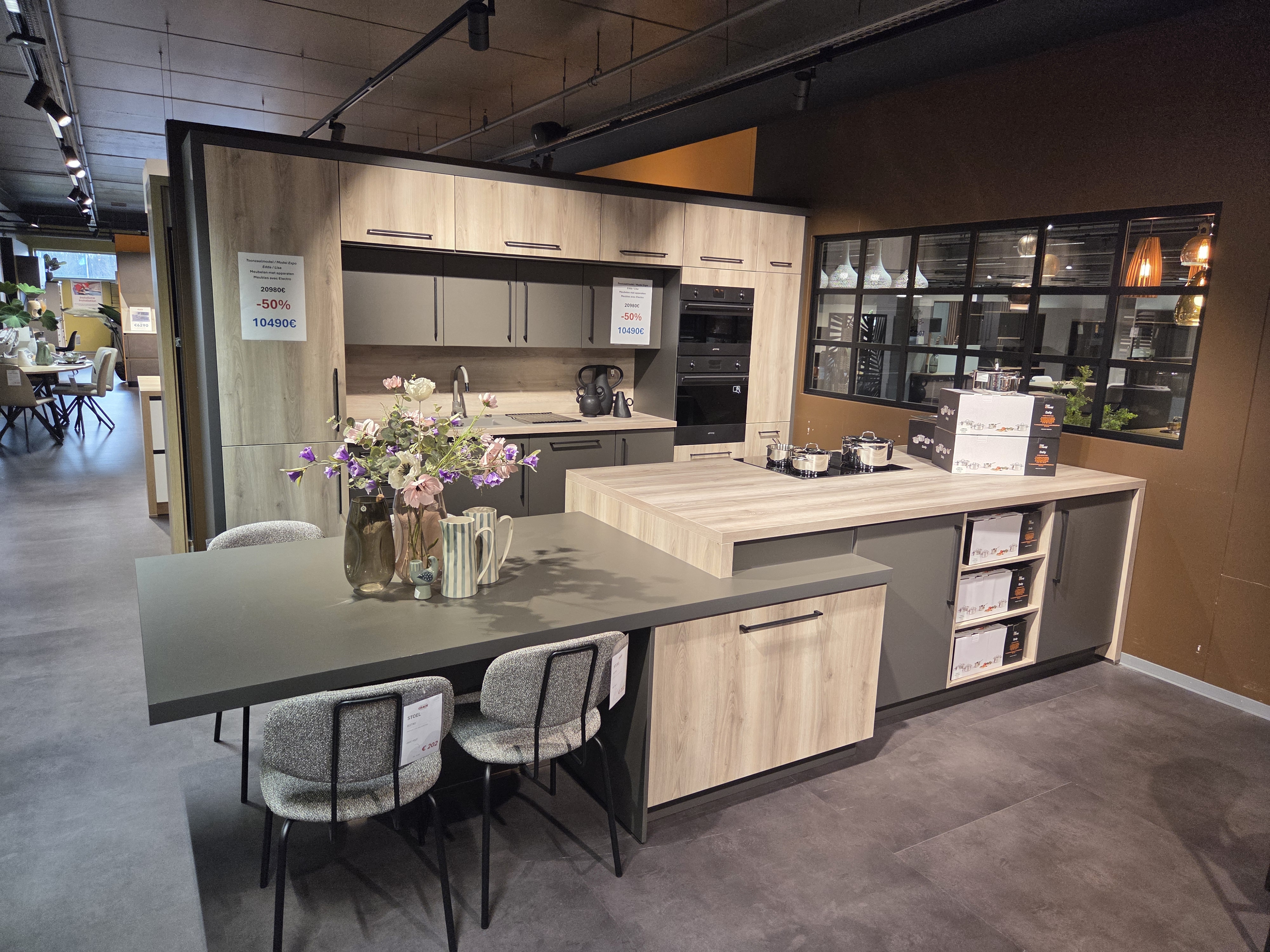 Compleet zoals op de foto, met elektro inbegrepen. Stoelen en deco niet inbegrepen.