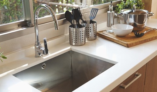 Inox heeft een eigentijdse uitstraling en is vlot combineerbaar met andere materialen, zoals hout, natuursteen en composiet. Een spoelbak in inox is sterk en gaat bij normaal gebruik een leven lang mee. Hij is bestand tegen hoge temperaturen en gemakkelijk te onderhouden.