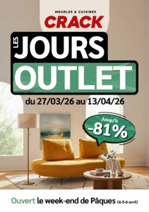 JOURS OUTLET du 27/03/26 au 13/04/26 LES Ouvert le week-end de Pâques (4-5-6 avril) -81% Jusqu’à